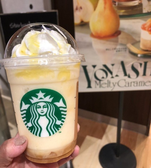 帰り途中のSAでご褒美おデザの洋なし生キャラメルフラペチーノ♪(´¬`*)