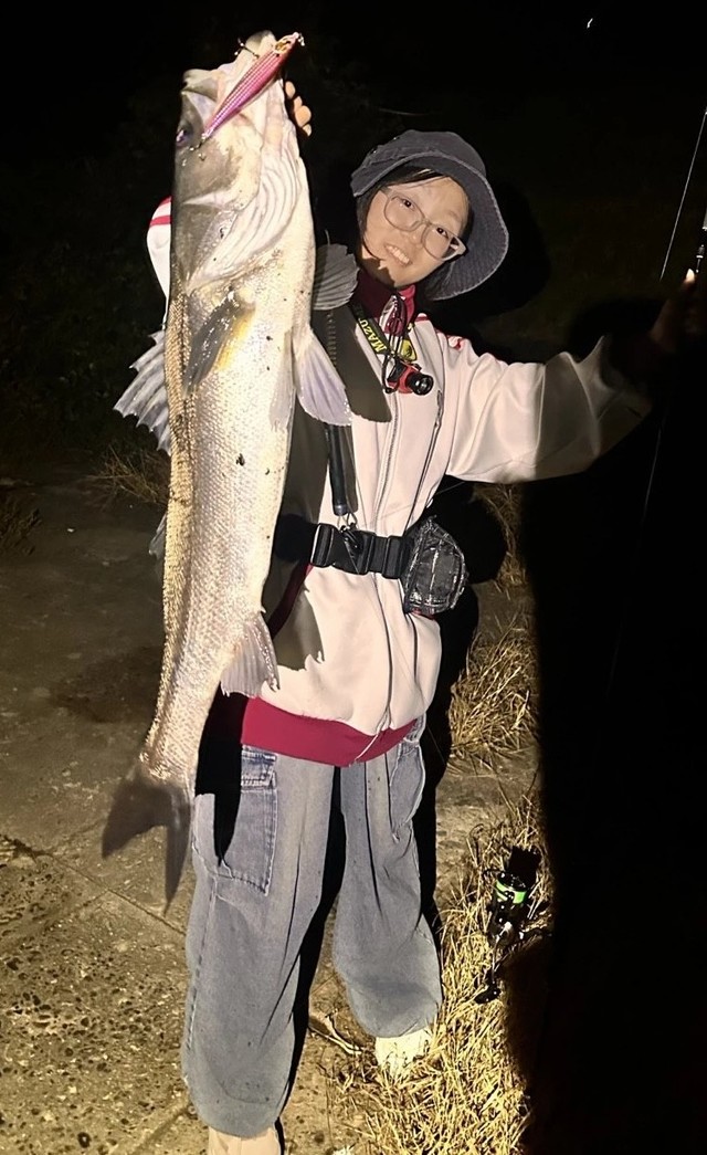 開始30分ほどで、70㎝くらいのシーバスが釣れました^^
