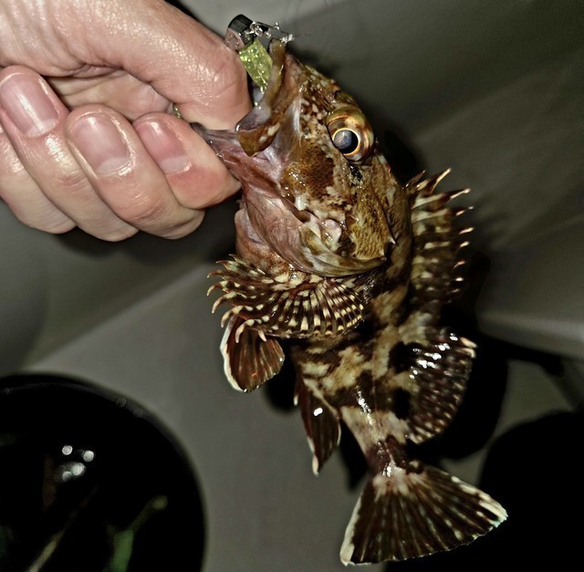 しかしそこではアタリはあるものの中々針掛かりまで至らなかったり、良いアタリで上がってきた魚はカサゴだったり(;^ω^)