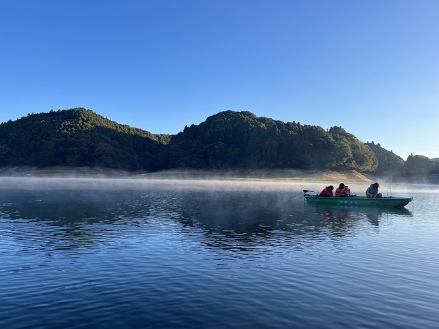 コチラ、九州の佐賀県北山湖は“浮桟橋”や“ドーム船”などはなく、レンタルボートを操船してポイントへ直接向かい釣りをするスタイルです(動力付ボートと手漕ぎボートが選べます)