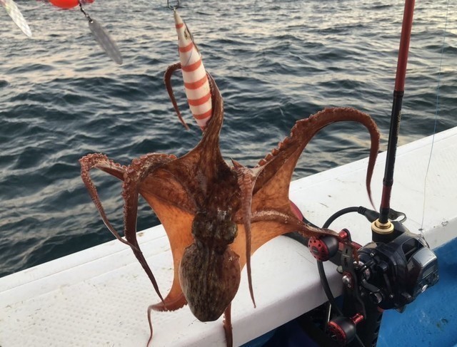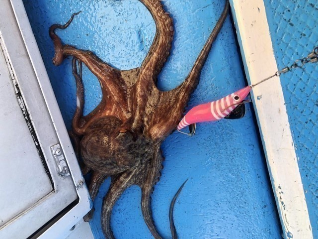 抱え込みの時に乗せた場合は体とロッドを出来るだけ前に出して巻き上げないと船縁にタコが張り付いちゃうので注意です(中乗りさんがやり取りのアドバイスしてくれます)