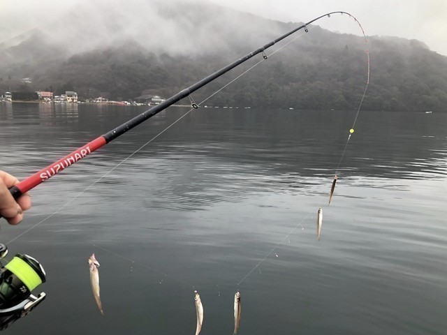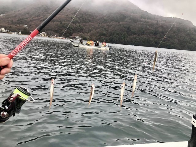 芦ノ湖へボートワカサギに行ってきました(*´з`)ノ