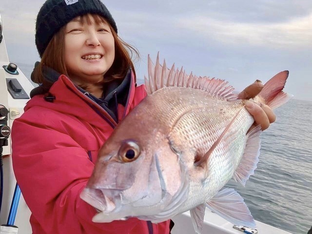 時々ロッドを出していた遠藤船長(この日は操船してないデス)が終盤にナイスマダイをキャッチ♪ヽ(´∇`)ノ