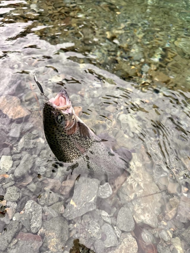 ぽこぽこニジマスを釣っていました(笑)