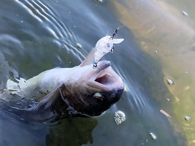 13:30頃になると日陰になる場所が多くなりライズも見られるようになったので手返し重視で表層をクランクで狙いました☆