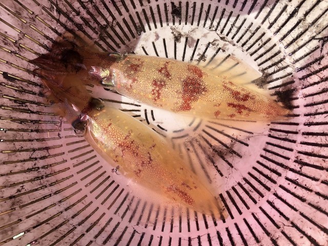 巻き上げ途中でプツンと感覚があって、なんとか1杯は乗ってましたが後はゲソ&墨&墨‥‥(^_^;)
