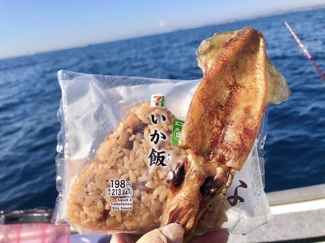 このところお気に入りのいか飯おにぎりと持参したマルイカジャーキーでお腹を満たします♪