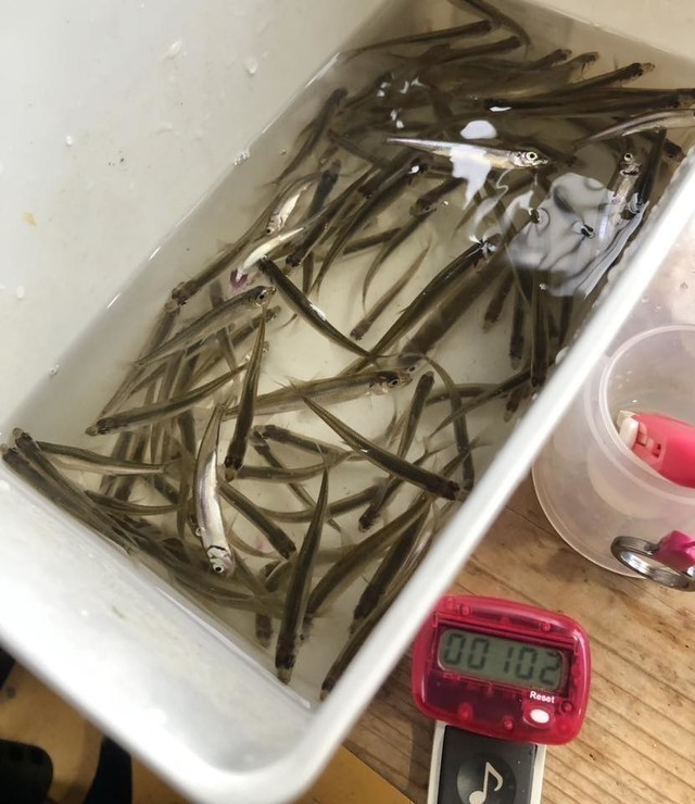 終了時間の5分前にいいサイズがきたので上がりワカサギにしました( ´艸)