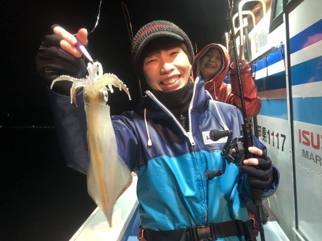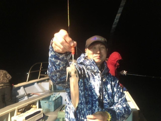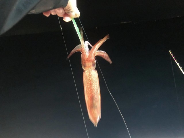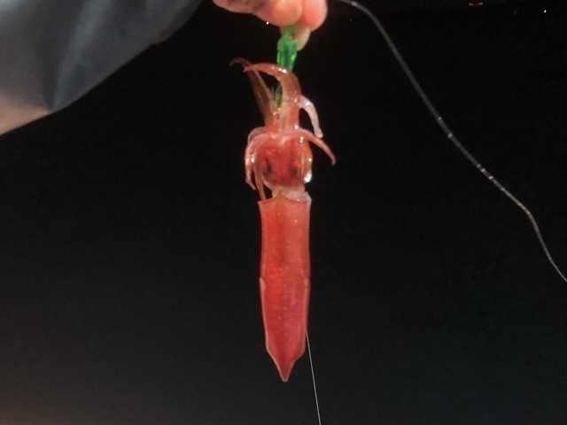 左隣でイカメタルをやっていたSさんも買いたてホヤホヤのダイワの新製品ドロッパーでキャッチ♪
