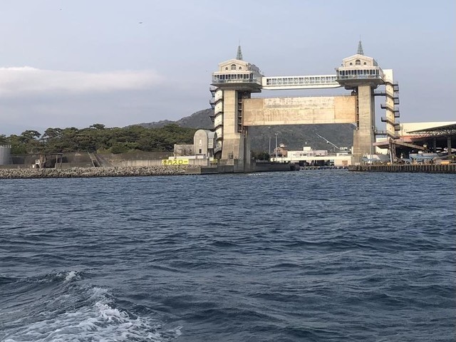 同じ港の秀丸さんはこの水門をくぐっていきますが鈴竹丸さんは少し離れた場所からの出船で水門の脇を通っていくのでちょっと新鮮☆