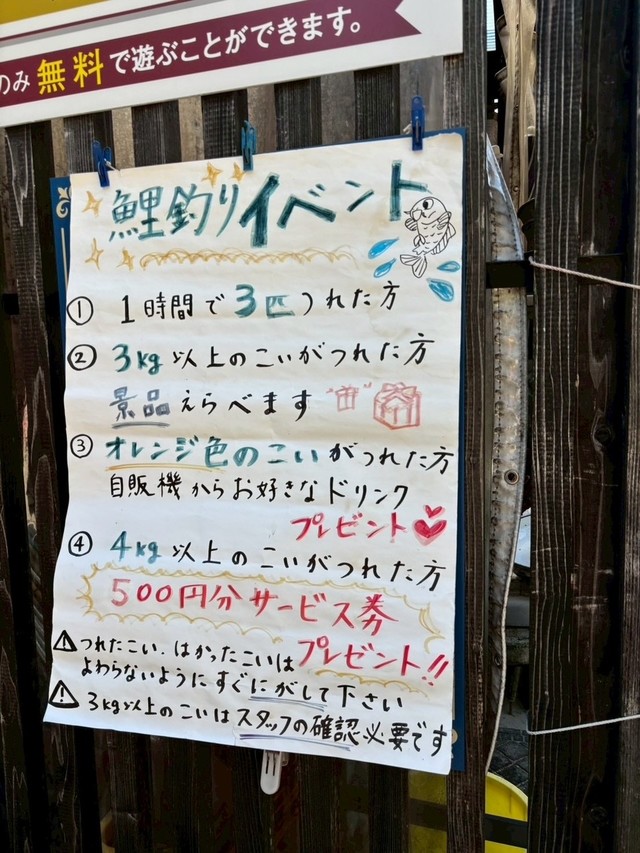 大きい鯉やオレンジの鯉を釣ると景品がもらえるイベント開催中☆