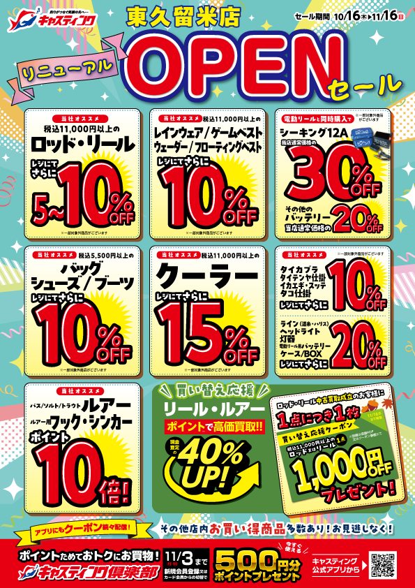 システム障害の影響により延期しておりました【東久留米店】のリニューアルオープンセールを10/16(木)より開催いたします!!