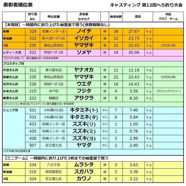 9月15日(月・祝) 【 キャスティング 第12回へら釣り大会 in 椎の木湖 】開催しました!
