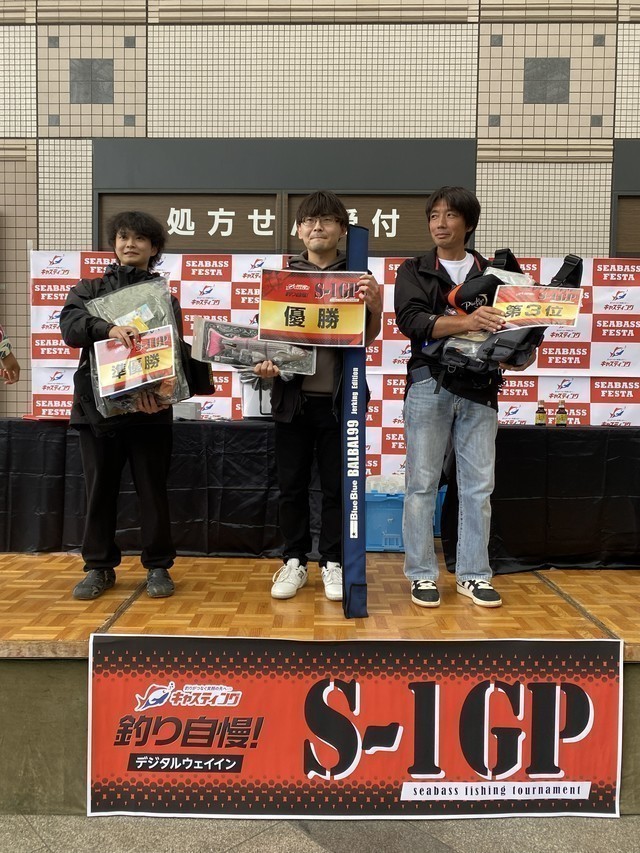 「釣り自慢」を用いたデジタルウェイイン方式で11年ぶりに復活したシーバス釣り大会「S-1GP」も同時開催!当日は特設ステージで、同大会の表彰式も行いました!