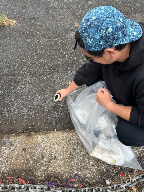 間口港は現在釣りが禁止となっているため、釣り具のゴミなどは非常に少なく、その一方で空き缶や、菓子パンなどの包装紙、タバコの吸い殻が目立ちました。