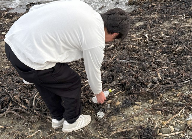 流れ着いた漂流物、海草などが多く、その中にあったペットボトルの空や洗剤容器、その他ゴミを回収しました。