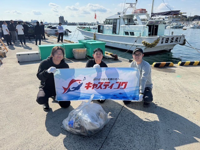 11/16(日)に開催した、つくば店、土浦店、水戸店3店舗合同の【船タコエギツアー】の開催後に、イベント参加スタッフの3名で当日お世話になった船宿「日正丸」さん周辺の清掃活動を行いました。