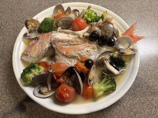 初めてのアマダイ釣りでの釣果からエントリー!(「レンコダイアクアパッツァ」ピックアップなのは彩りが良かったため)