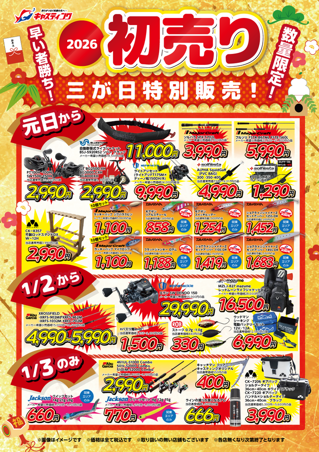 日頃のご愛顧に感謝して、1/1(元日)~1/3(土)の3日間、通常よりはるかにオトクな特別価格の商品を販売いたします!!早い者勝ちで無くなり次第終了となります!!