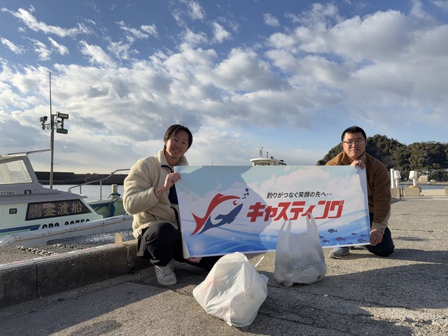 1/21(水)に、イオンモール木更津店・茂原店のメンバーで磯釣り研修会終了後に、「鳴釜渡船さん船着き場(駐車場)付近から港内周辺」にて清掃活動実施しました。