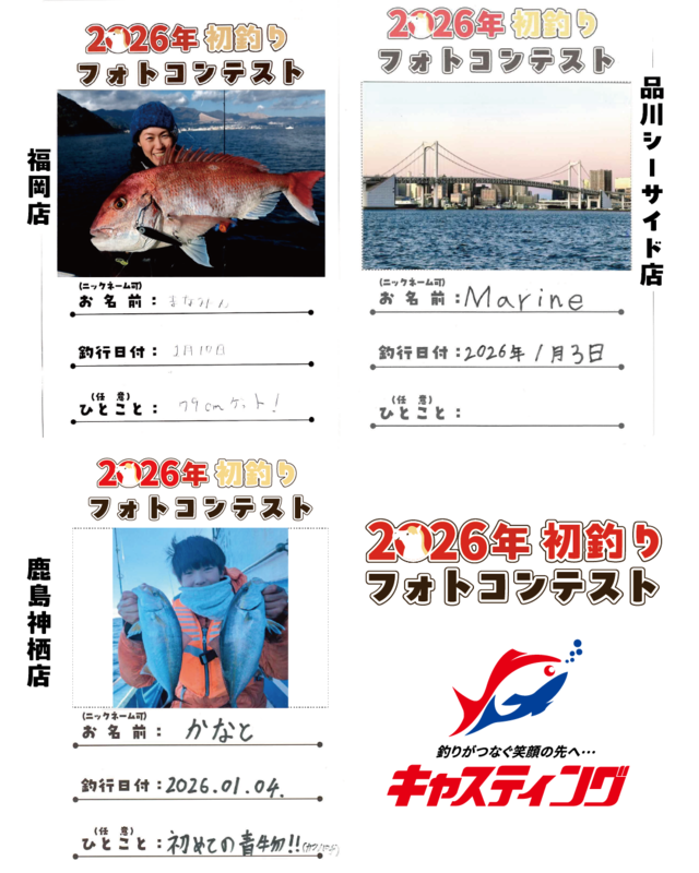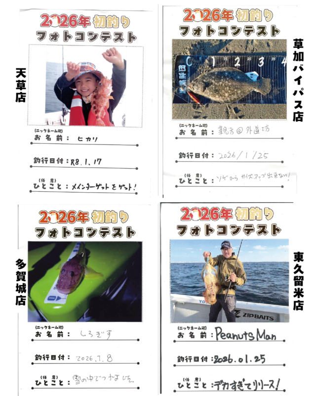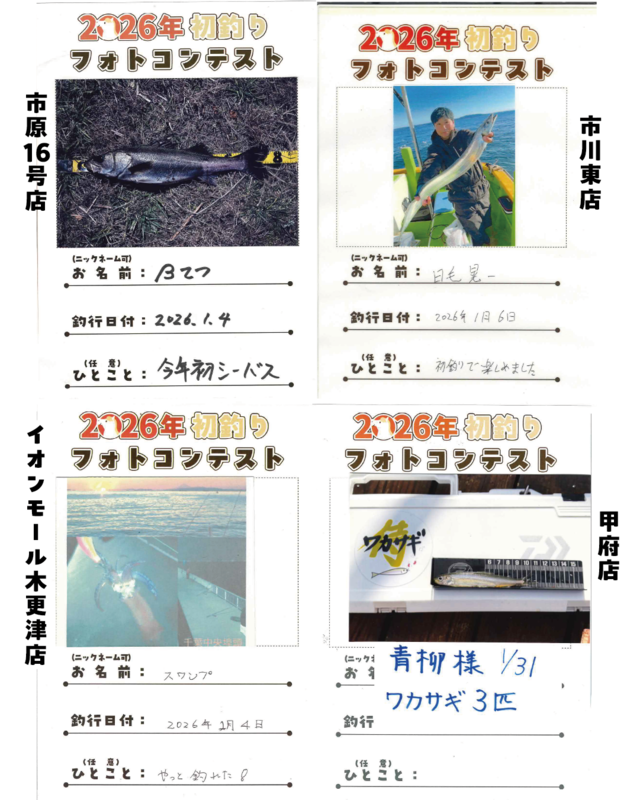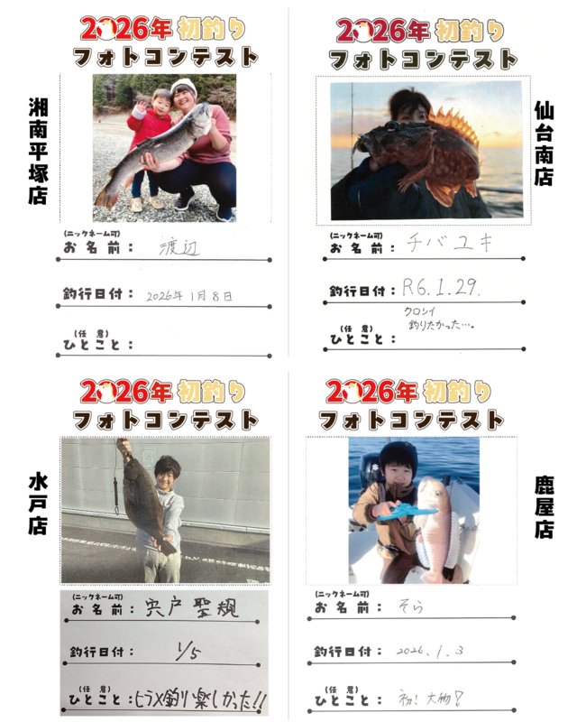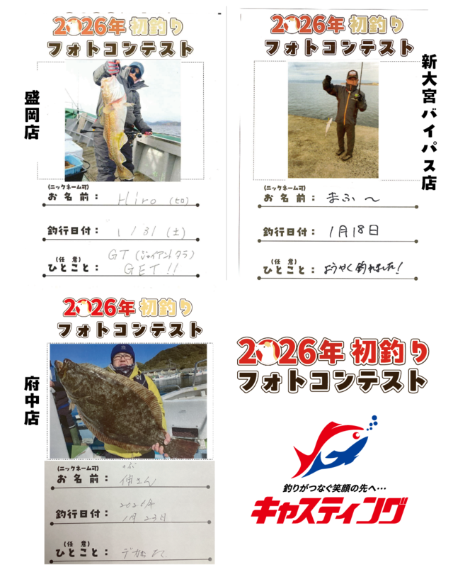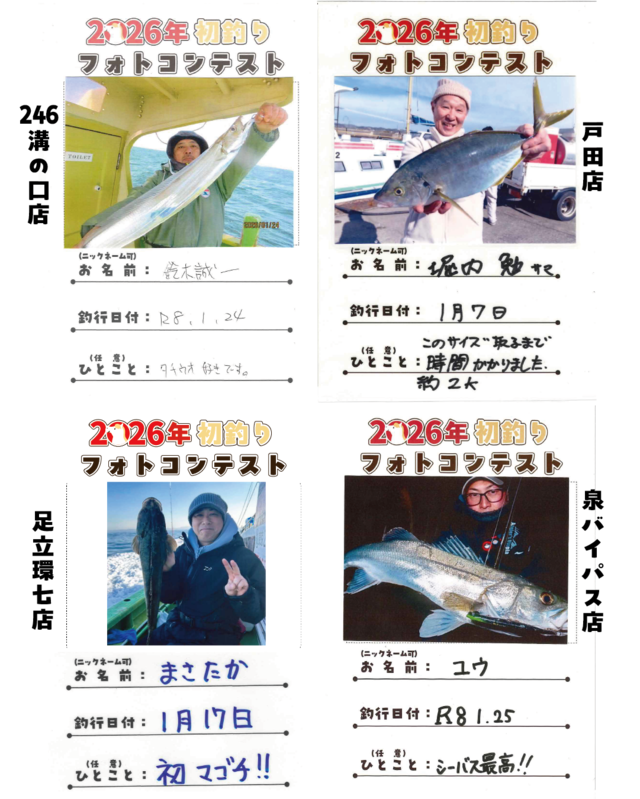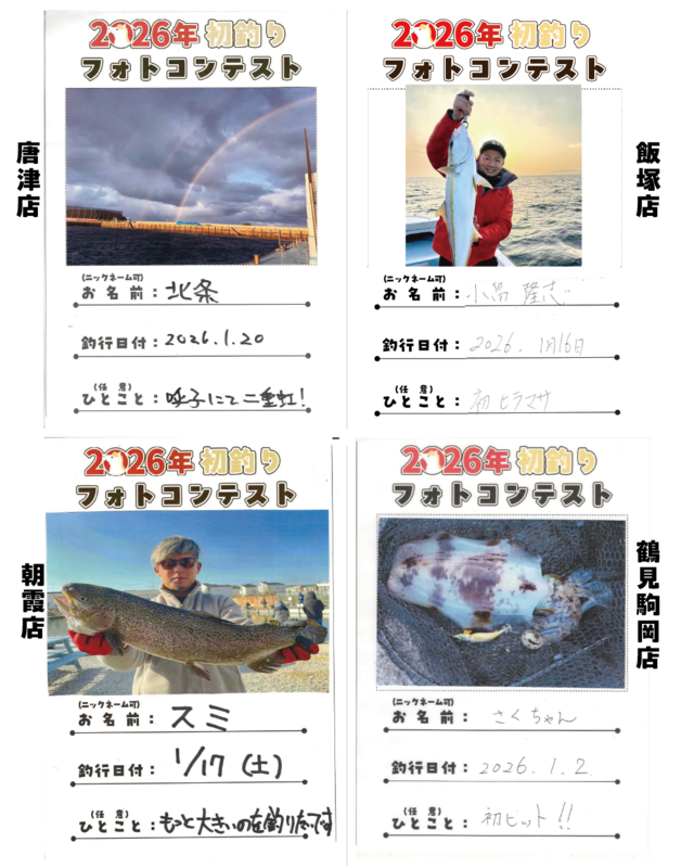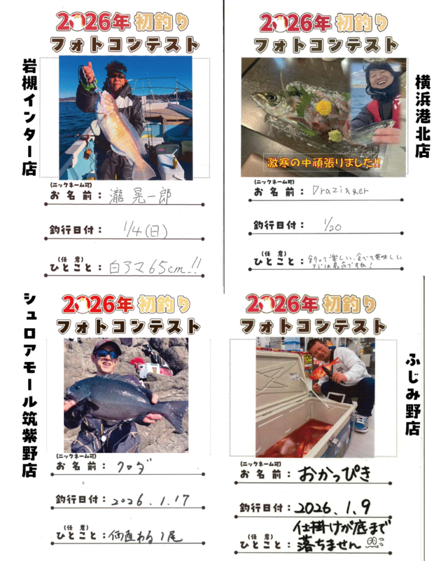 2026/1/1(木)~1/31(土)の期間開催しておりました【釣り自慢フォトコンテスト特別企画】「2026年初釣りフォトコンテスト」の結果発表です♪