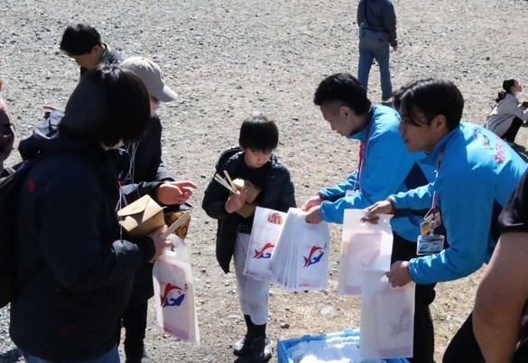 お昼に「だんべぇ汁」とおにぎりが配られます