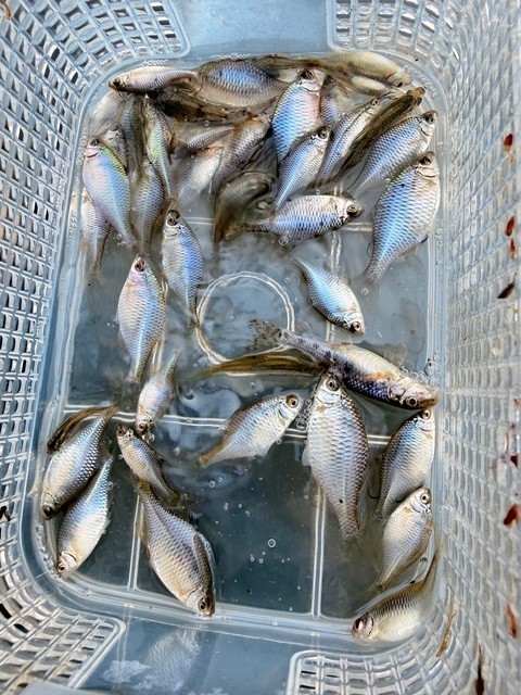清掃終了後は少しの間ですが、釣り場調査も実施。春休みという事もあり釣りに来ていた方もおり、タナゴやクチボソなどが釣れていました。ファミリーだけでなく、数人のヘラ釣師の方も本格的に釣りをなされていました。