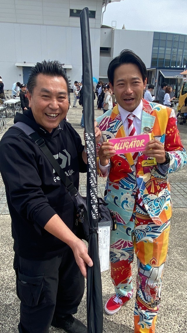 大抽選会にてなんとアリゲーターのロッドを見事当てたお客様が声をかけてくれました…!!