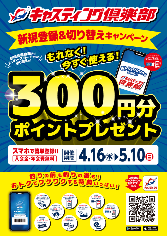 4/16(木)~5/10(日)【キャスティング倶楽部】新規会員登録・切替えですぐに使える《300円分のポイント》もれなくプレゼント!