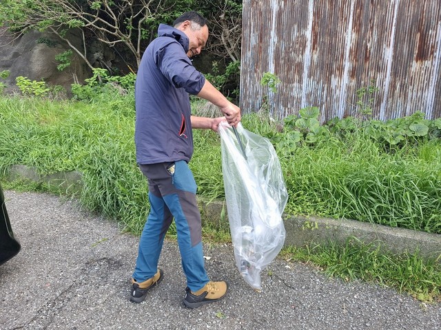 清掃活動中に漁協の職員の方にもお会いしまして、労いの声を掛けて頂きました。エリアが広範囲に及ぶため2名ではすべてのエリアの清掃活動が出来なかった事が心残りとなりました。