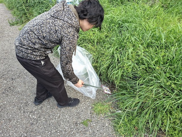 しかし、実釣エリアでは、絡んだ釣り糸、ビニール袋、タバコの吸い殻、仕掛けのパッケージ等が見受けられ、後部の草むらには釣り人が残したと思われる、弁当、ペットボトル、空き缶等が見受けられました。