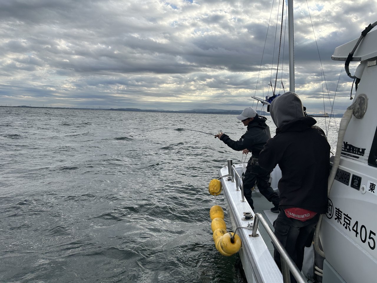 潮止まりからは両舷でバーチカルに。すると、田邊さんの竿にひと際大きなアタリ!