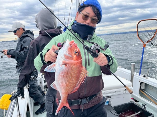 青物のような感じで走られておりましたが、上がったのは2キロオーバーの良型マダイ!