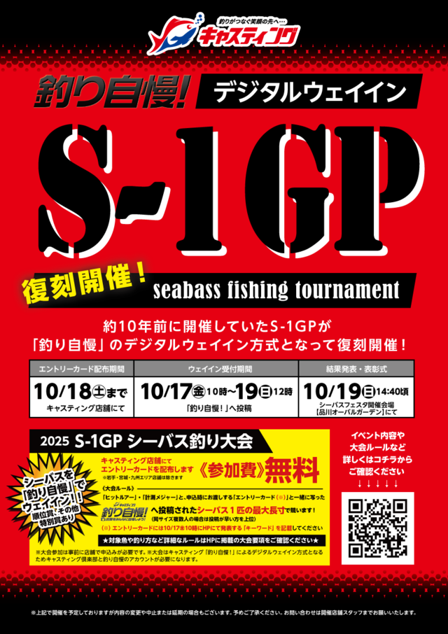復刻開催!おかっぱりシーバス釣り大会「S-1 GP」!!