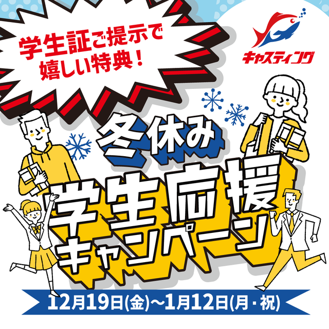 冬休み学生応援キャンペーン実施は1/12(月)まで!