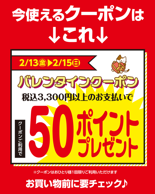 どちらのクーポンもご利用期限が明日2/15(日)までとなりますので、ぜひクーポンを使ってお得にお買い物をして下さい!