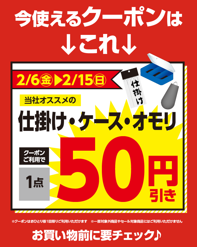 仕掛・ケース・オモリ50円引きクーポン