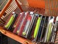 中古品ルアーや小物類は準備出来たものから中古売り場に流しています。
