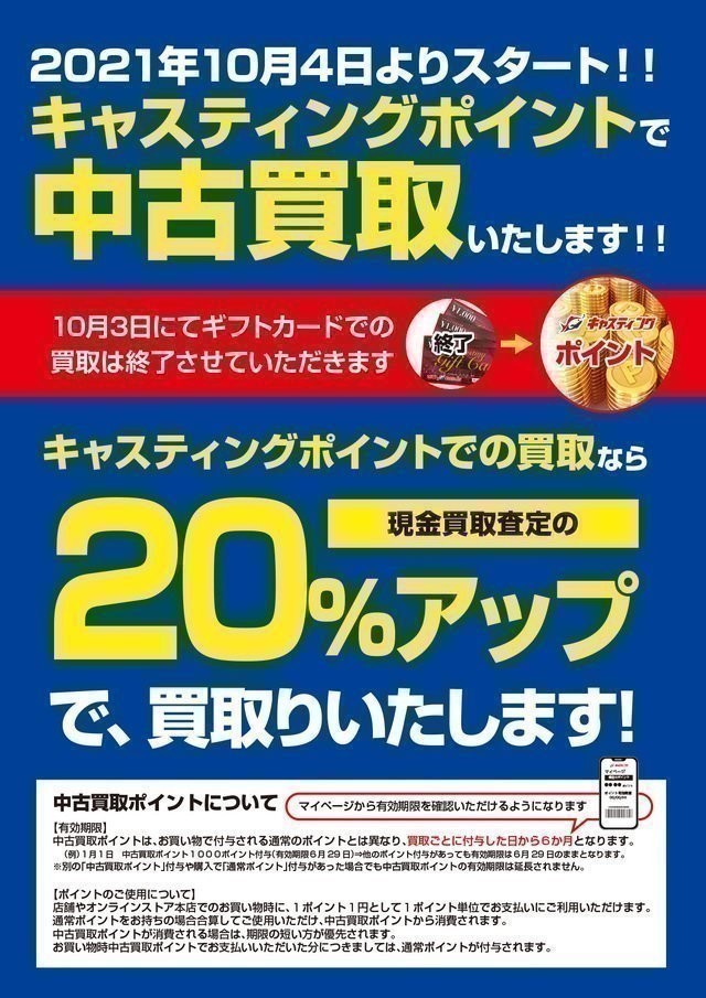 ※中古買取ポイントは通常のキャスティングポイントと有効期限が異なり