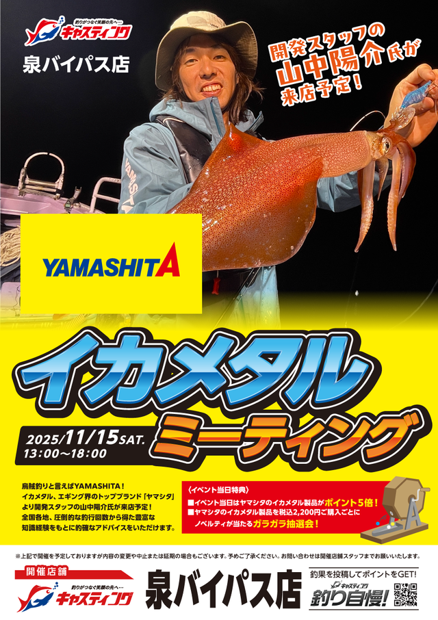 イカメタル、エギング界のトップブランド「ヤマシタ」より開発スタッフの山中陽介氏が来店予定!