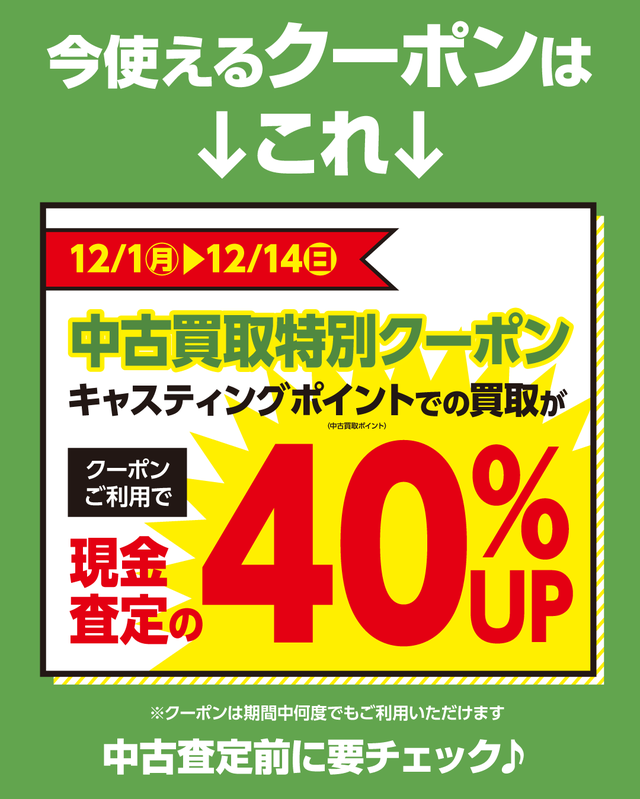 キャスティング倶楽部新規会員登録及び切替えですぐに使える!《300ポイント》プレゼント開催中の泉バイパス店に是非お越し下さい!