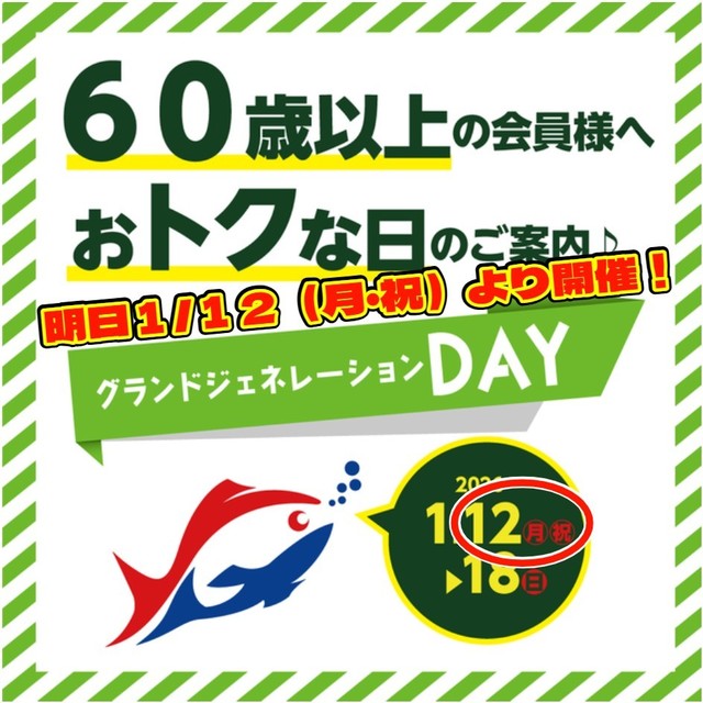 ☆60歳以上の会員様へおトクな日のご案内♪『グランドジェネレーションDAY』明日より開催!☆