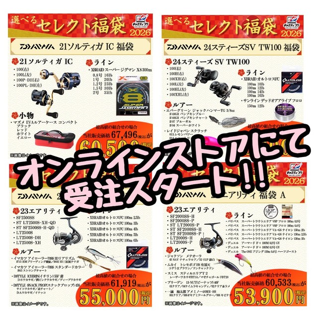 さて本日からキャスティングオンラインストアでセレクト福袋の販売がスタートしました!!