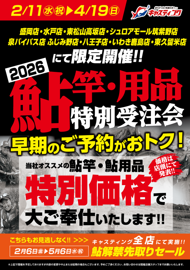 鮎釣りファンの皆さま!4月19日までは「鮎新製品特別受注会」といたしまして、鮎竿・鮎用品を特別価格にて大ご奉仕中です♪