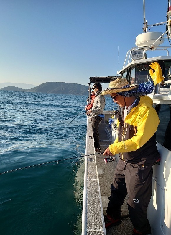 右舷で並んで釣ります