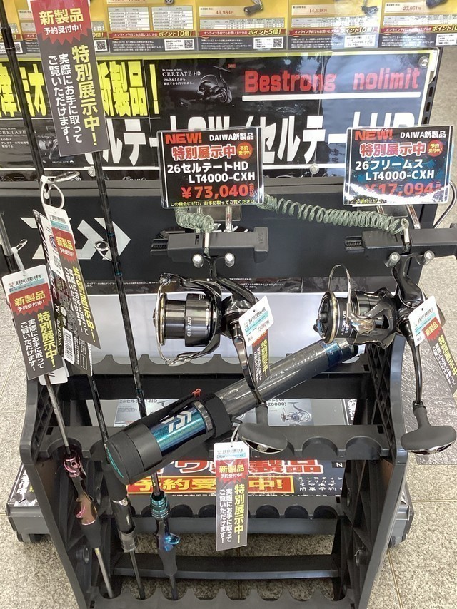 また只今店頭にて未発売のダイワ新製品の一部を展示しております!実際に手に取って触っていただくことが可能です♪