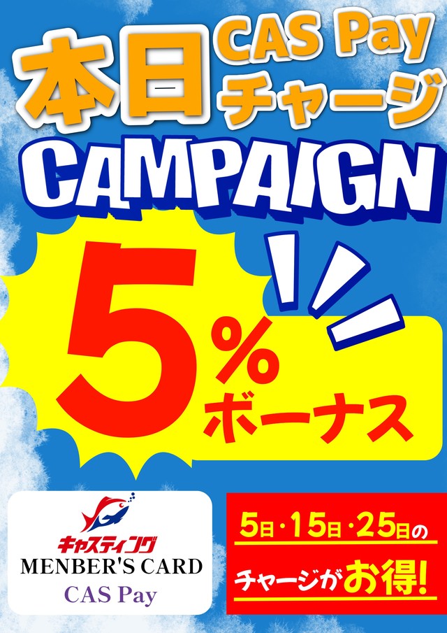 『CAS Payカード』へのチャージは、ぜひお得な5の付く日に!