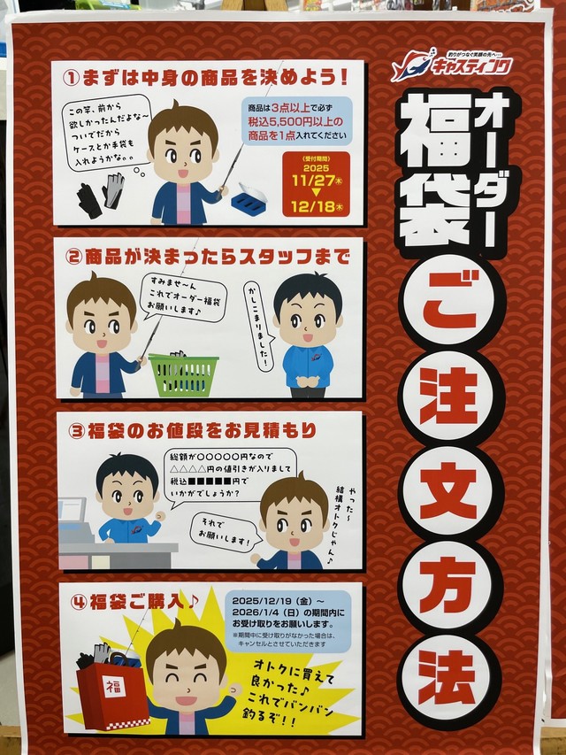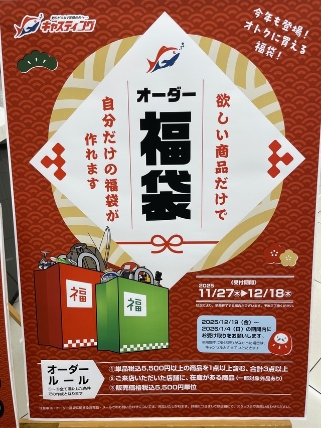 お買い得のロッド・リールはもちろん、各エリアごとのお得な企画、福袋などなど年末年始ならではの企画も多数ご用意いたしました!!