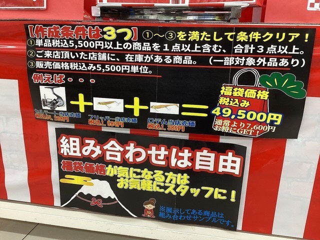 お買い得のロッド・リールはもちろん、各エリアごとのお得な企画、福袋などなど年末年始ならではの企画も多数ご用意いたしました!!