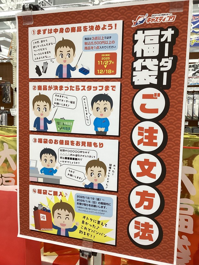 「年始は家でゆっくりしたいなあ」「来年に向けてロッドやリールを新調したい!」とお考えのそこのお客様!是非オーダー福袋をオススメいたします♪